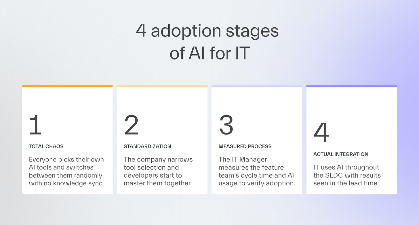 My experience as a CTO who helped introduce AI coding tools for 220 technical employees taught me that there are 4 stages of adoption.