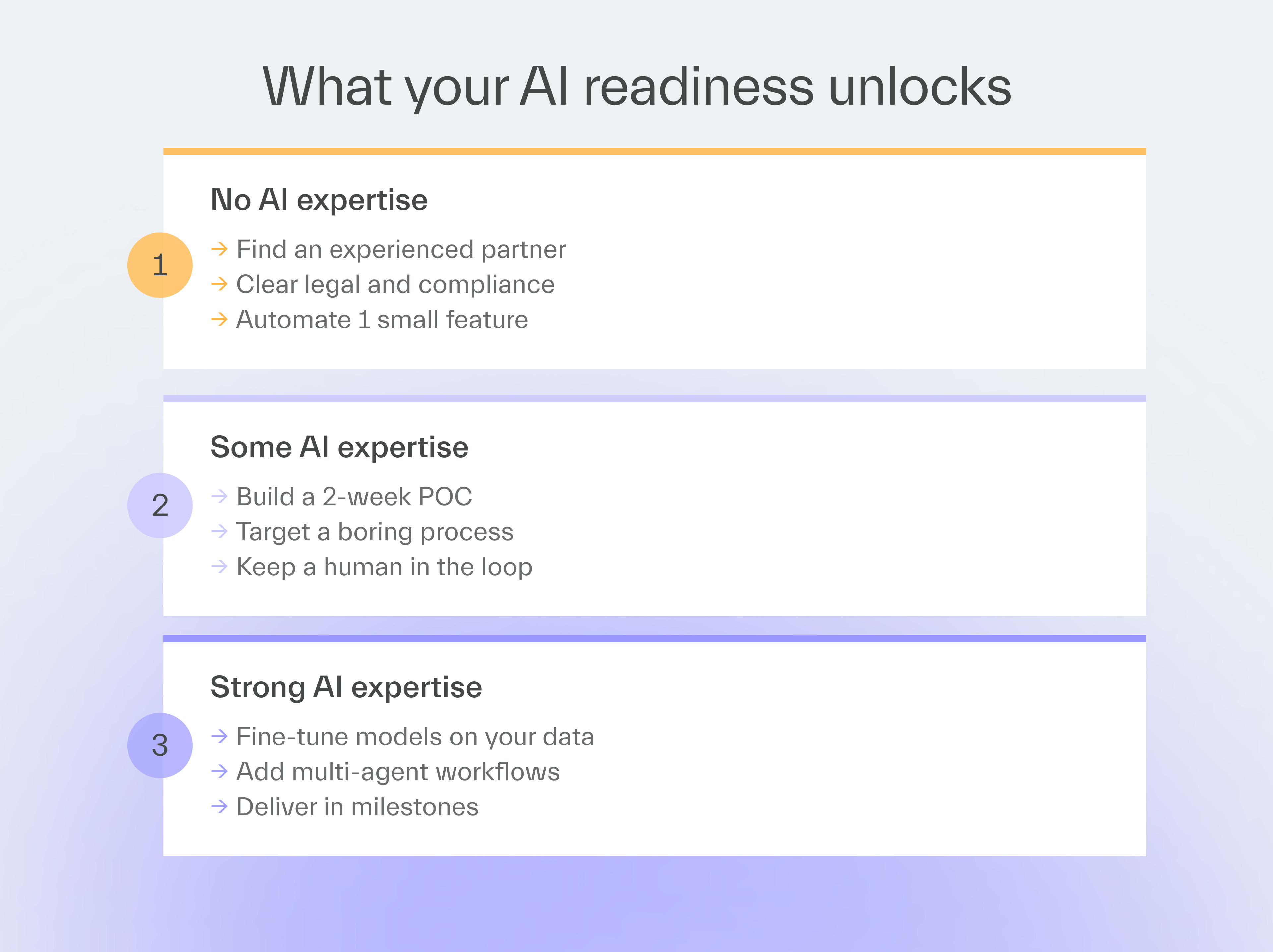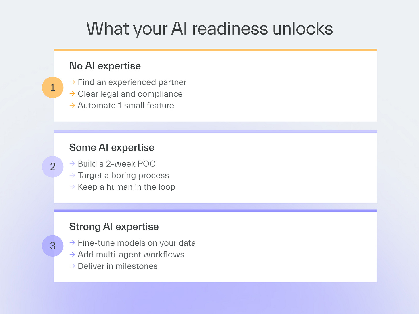 Today, I’ll show you how to prevent that with a set of AI PoC guidelines tailored to three AI readiness levels.