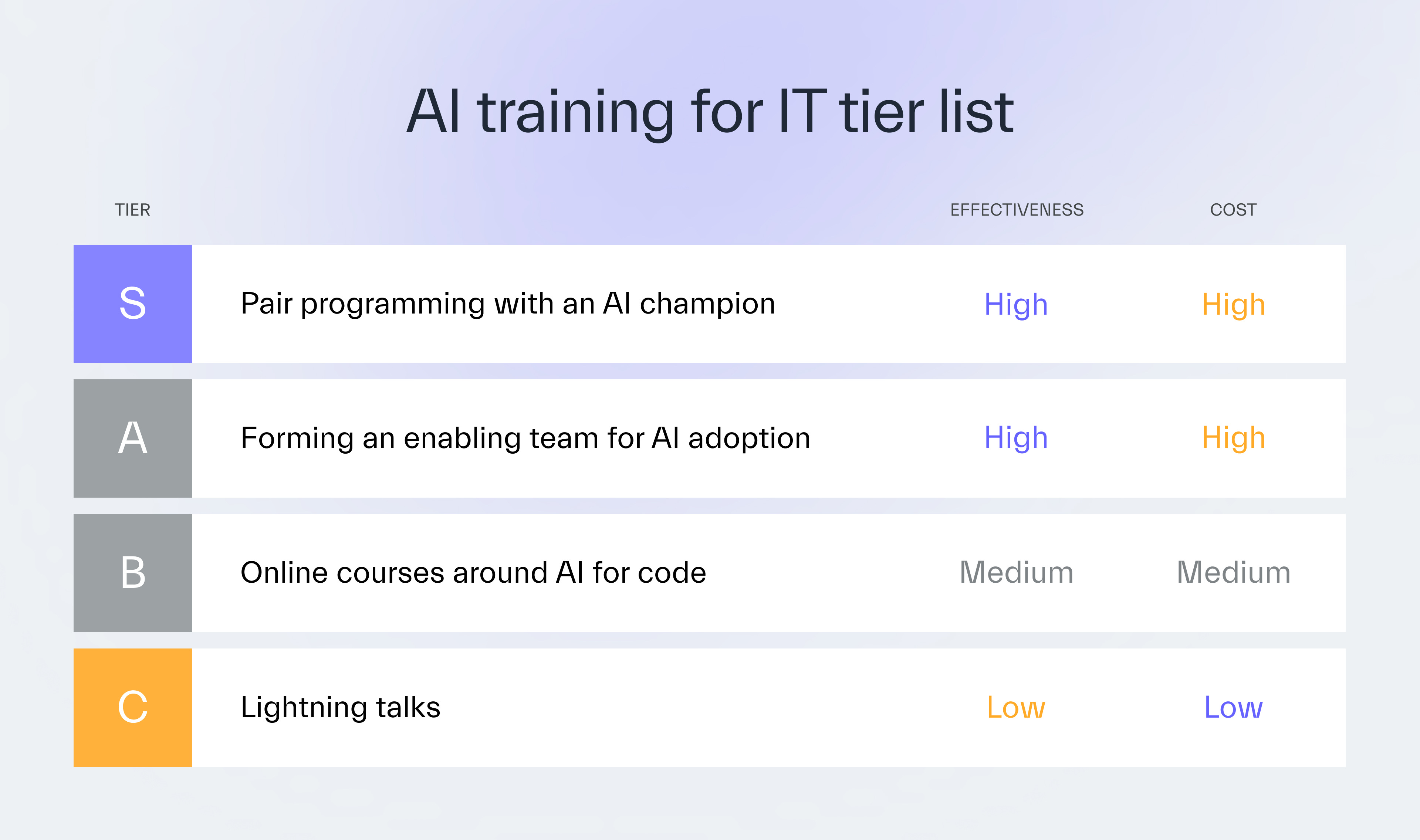 Lightning sessions were the most efficient AI upskilling method we’ve introduced.