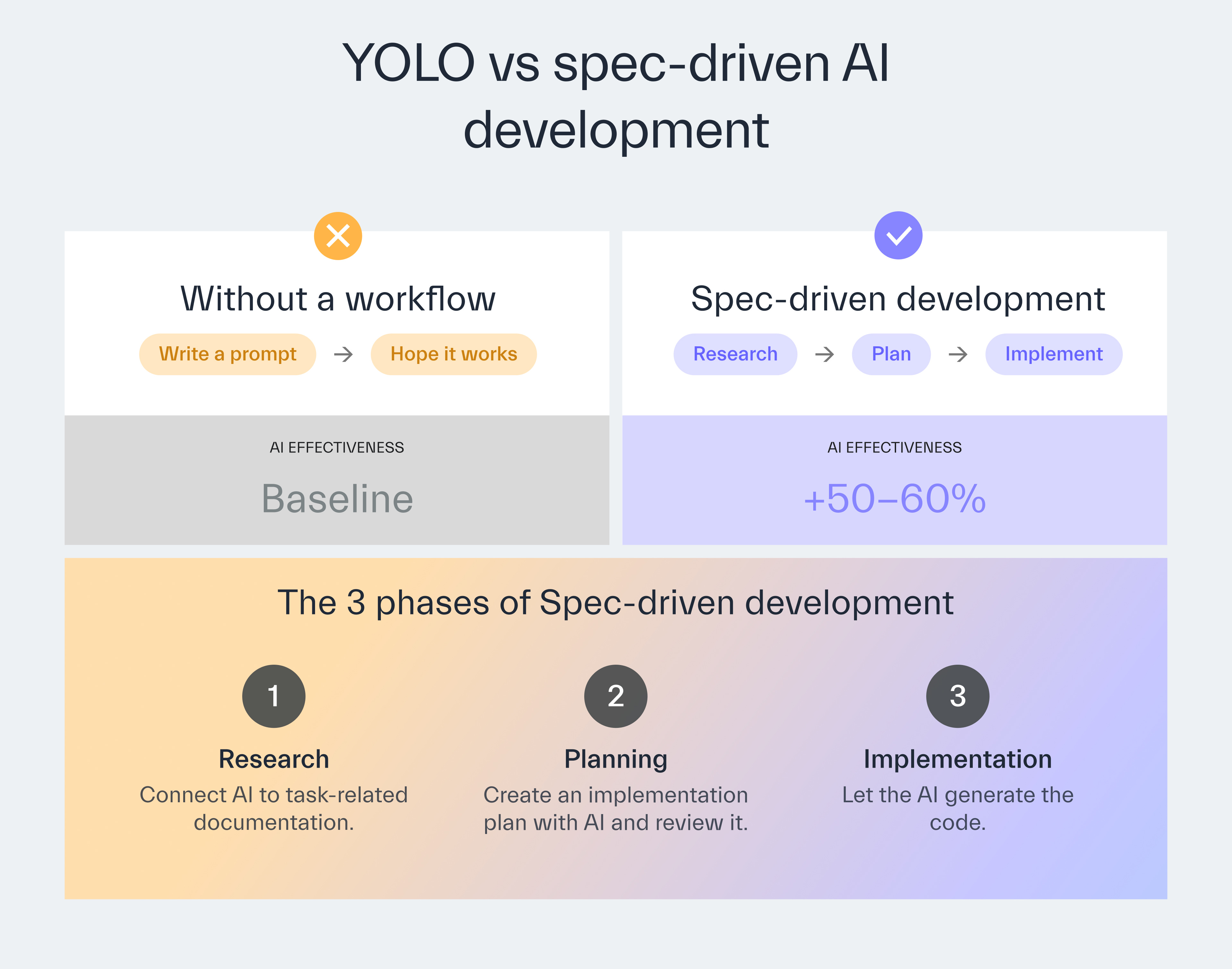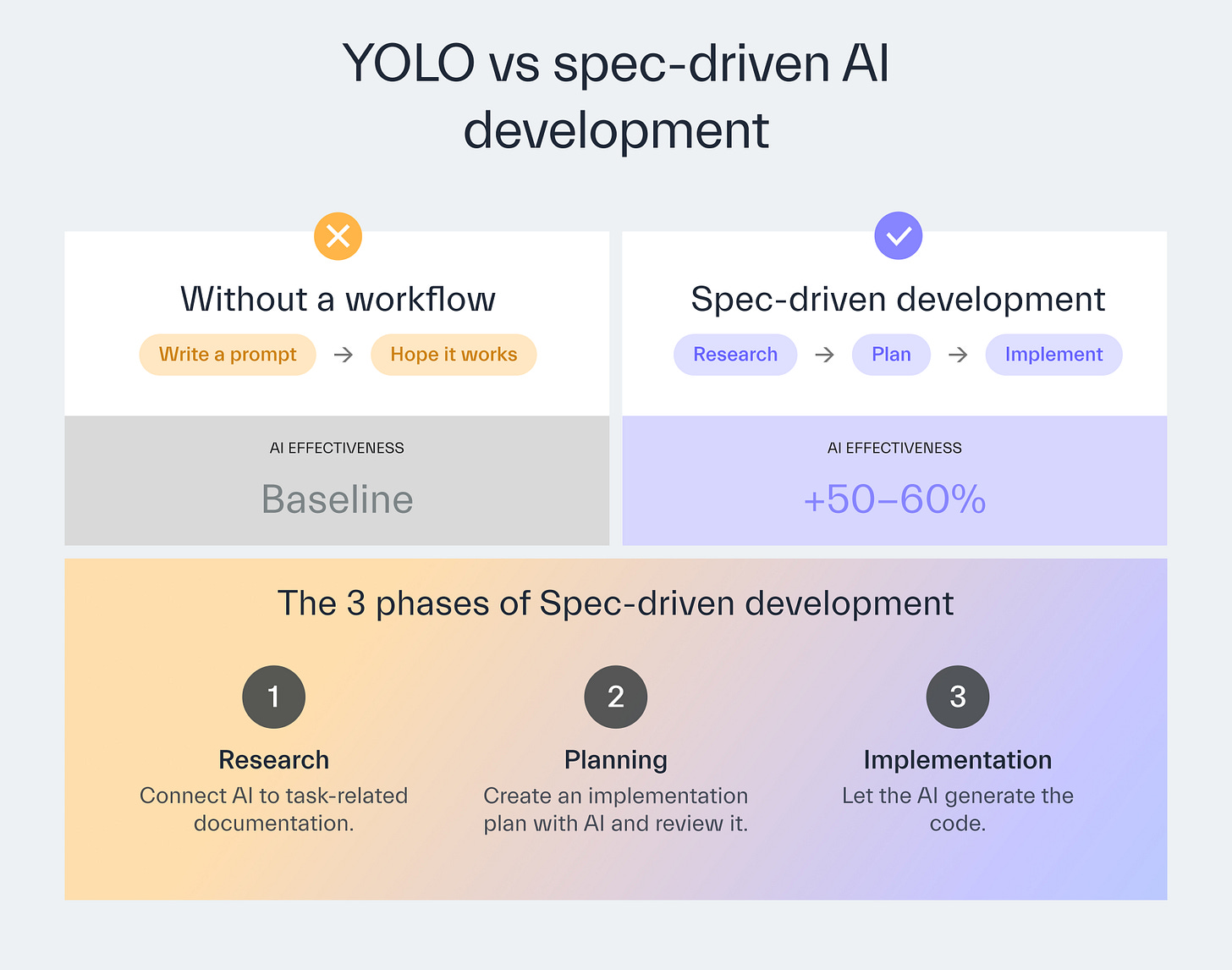 Spec-driven development (SDD) is an approach to AI-assisted coding that maximizes the generated code’s quality.